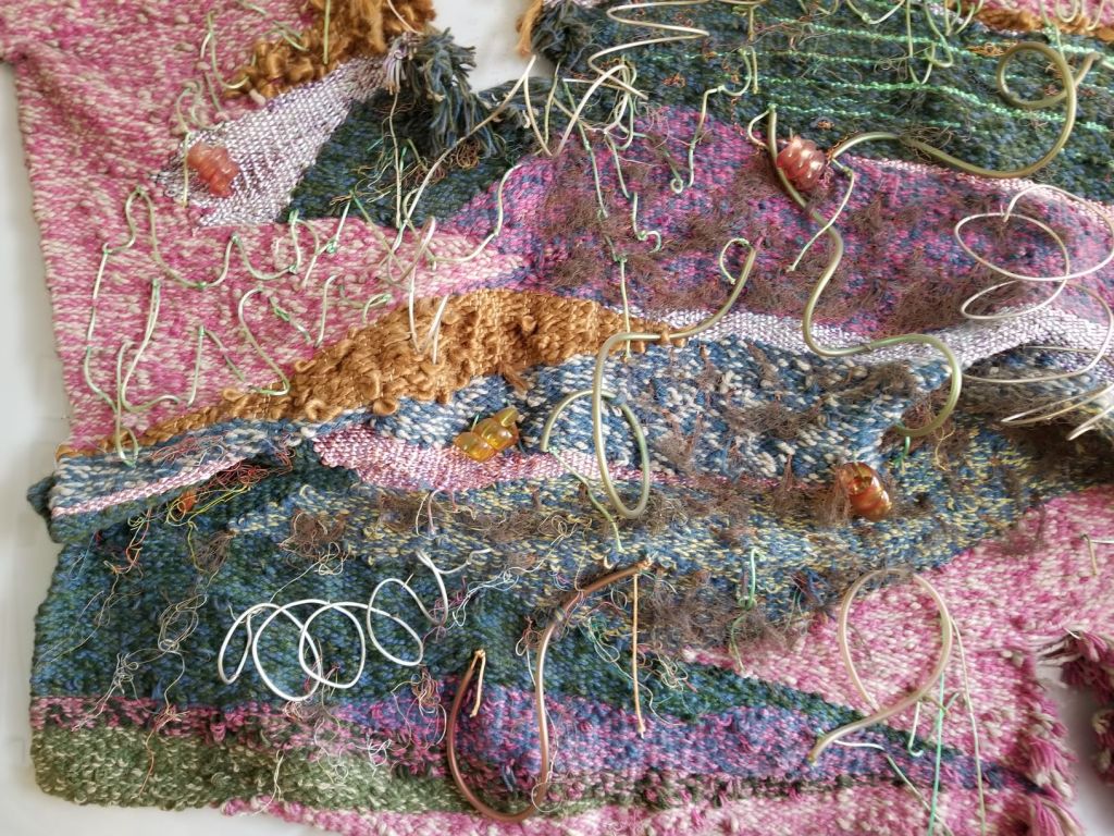 These next pieces are becoming more textured and some have sections that were woven on a floor loom that were then woven into the larger piece on the tapestry loom. Unfortunately the color of the detail shots is not as accurate as the color of the full tapestry.