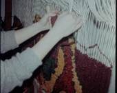First, I scrolled though my online digital files and watched the last fifteen years of my New York City life flash before me: family—kids, grandkids, great-grandkids, mom, brothers and sisters, friends—in Wisconsin, New Jersey, Brooklyn, Harlem, California; job at Dance Division; trips to Paris, Brazil, Cambodia, Japan; gatherings for birthdays, holidays, anniversaries, deaths. No weavings. Then I pulled out the multiple photo albums from shelves and cabinets. These pictures took me back another twenty years, still in NY: my son coming into my life, grandkids, more trips, more friends, more past, including bands and literary magazines. Everyone grew younger; my hair had color and my husband had hair. Still no weaving pictures. Then Arthur pulled down a plastic bin. Jackpot. I found the late 1960s and 1970s photos, my deepest layer, though not as deep as the albums at my mother’s home with black and whites of my childhood. In the midst of these fading color pictures of my loft in Berkeley and the young selves of my friends and me—including a good number of loved ones who never got the chance to get older—I finally came across the record of my weavings. Slides in albums made to show galleries, slides in boxes.