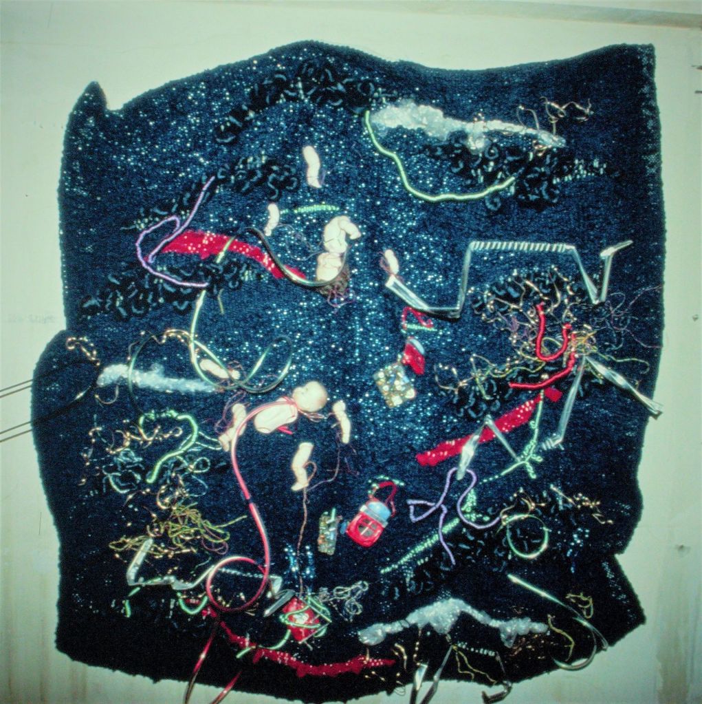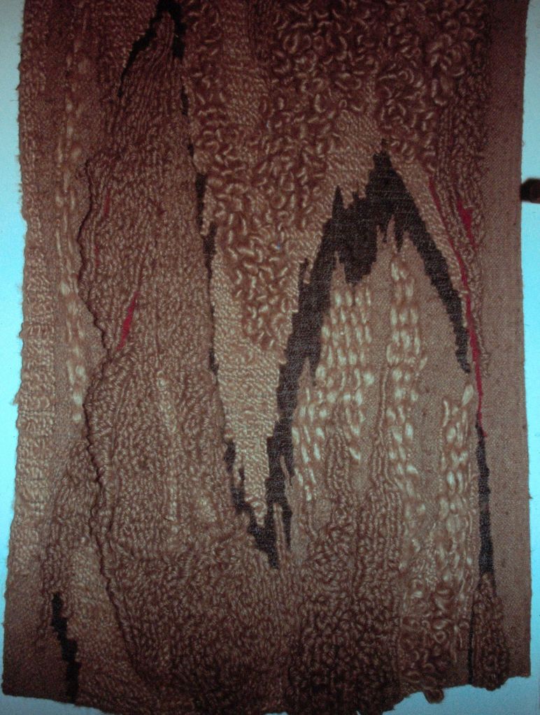 These are the later works, where I began adding found objects into the weaving. For these later works, still in the 1970s, I took what I thought was bold move and, after making the tapestry slashed it, creating holes and making its surface pucker and undulate.