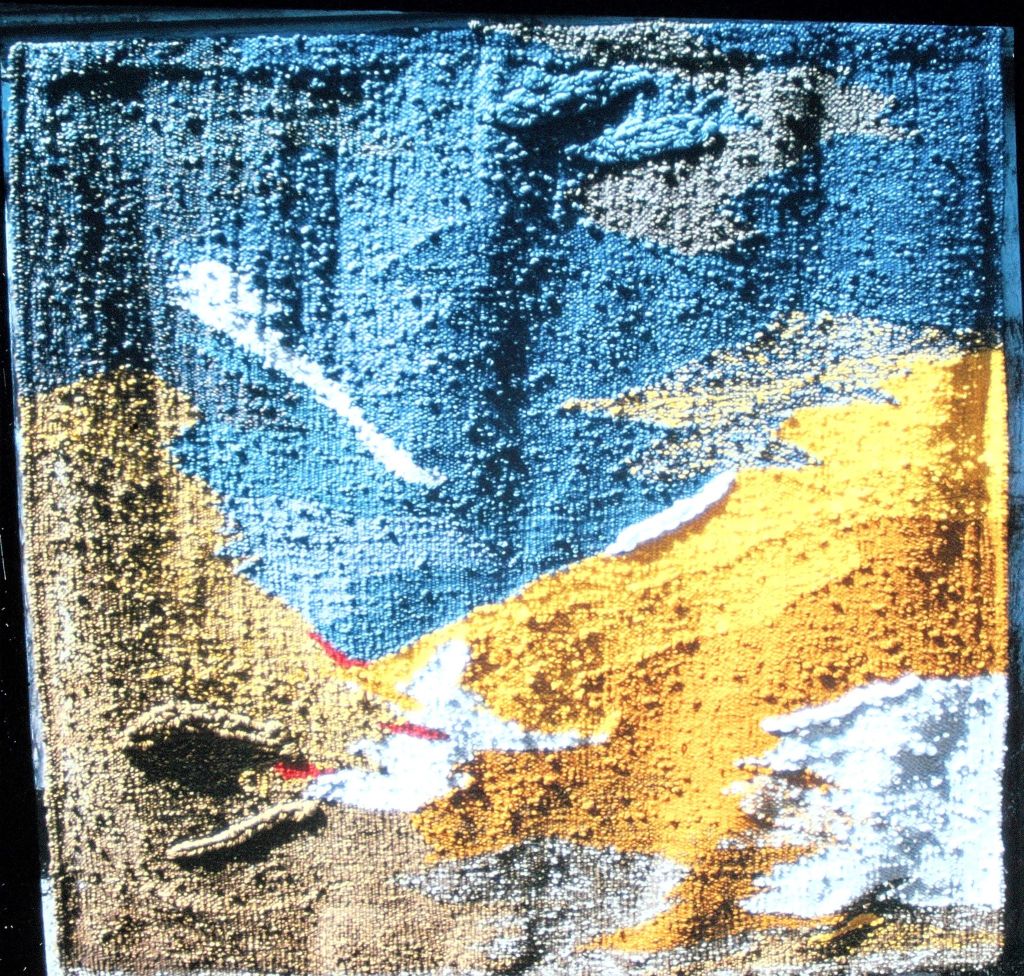 Where are all the tapestries I made back then? I’m not sure. Some are with friends—some of whom I no longer have a clue about their whereabouts—some went to galleries I lost touch with, others got lost or tossed out in the intervening forty years. They’re big, usually at least five feet high or wide, and they are heavy and hard to hang. A couple weeks ago I decided to search for the photos of those weavings, which began an archeological dig. As I uncovered the layers, each stratification shuttled me back through my life, chronologically, upper layers being most recent.